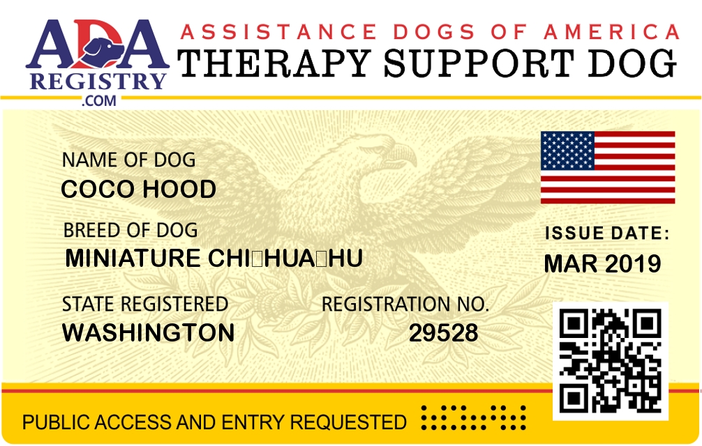 Therapy Dog Registration for Coco Hood