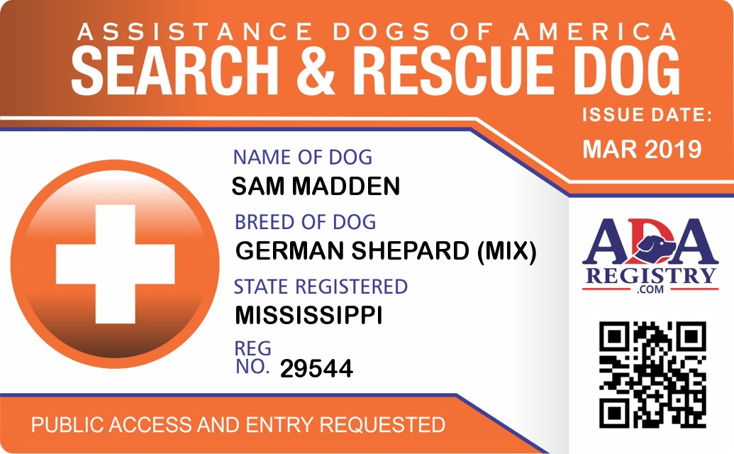 Search And Rescue Dog Registration for Sam Madden