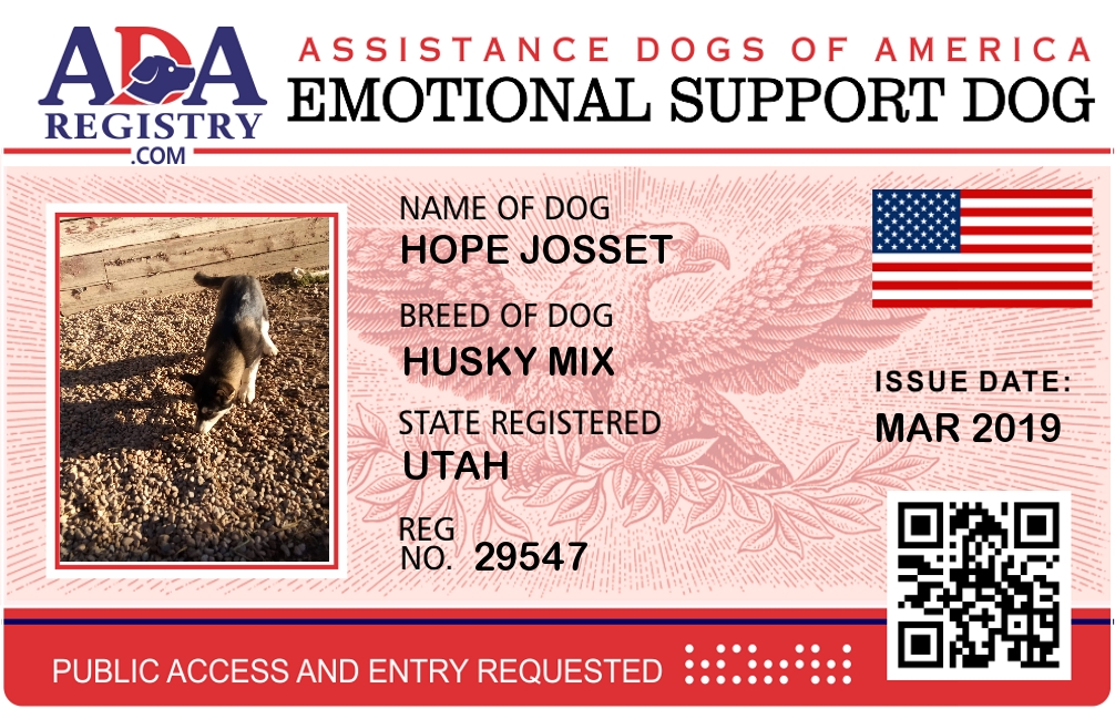Emotional Support Dog Registration for Hope Josset