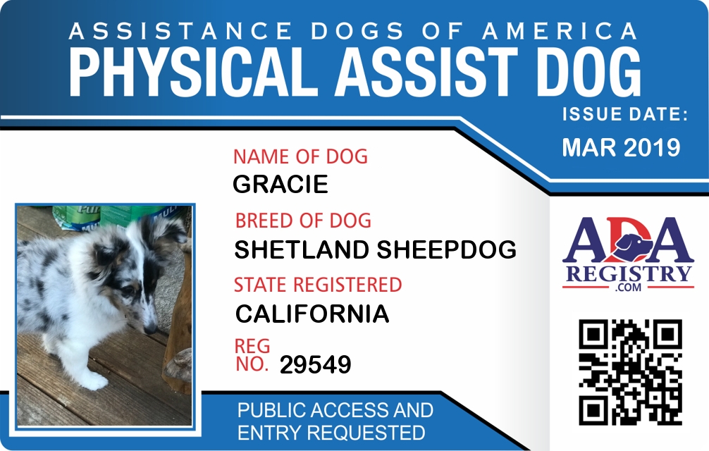 Physical Assistance Dog Registration for Gracie