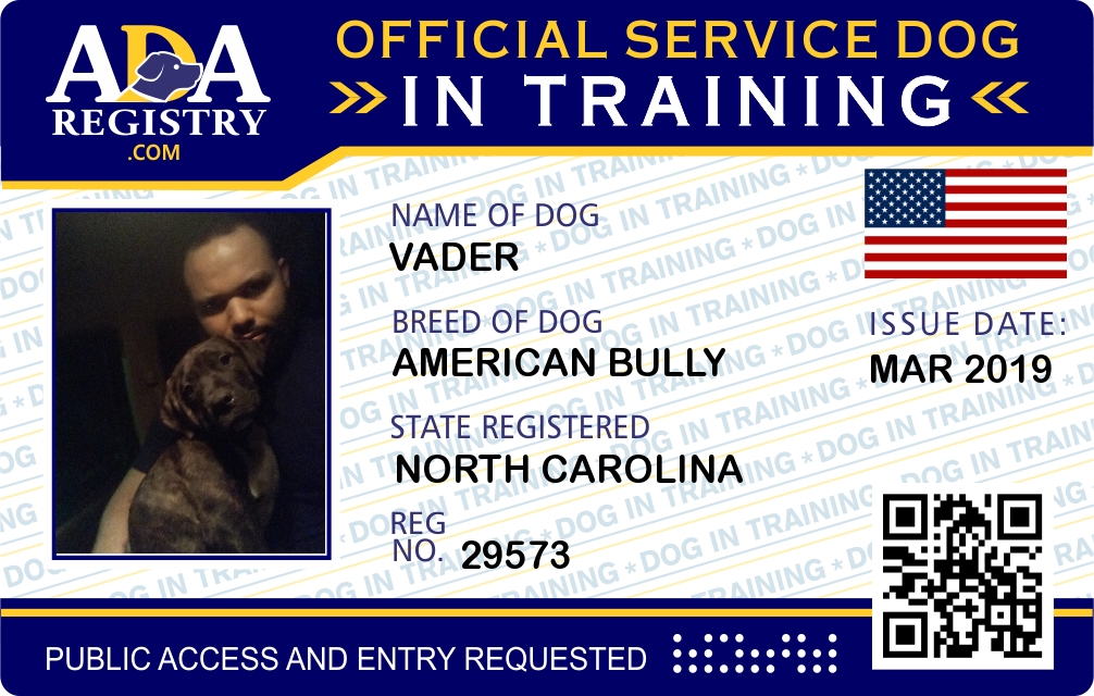 Service Dog In Training Registration for Vader