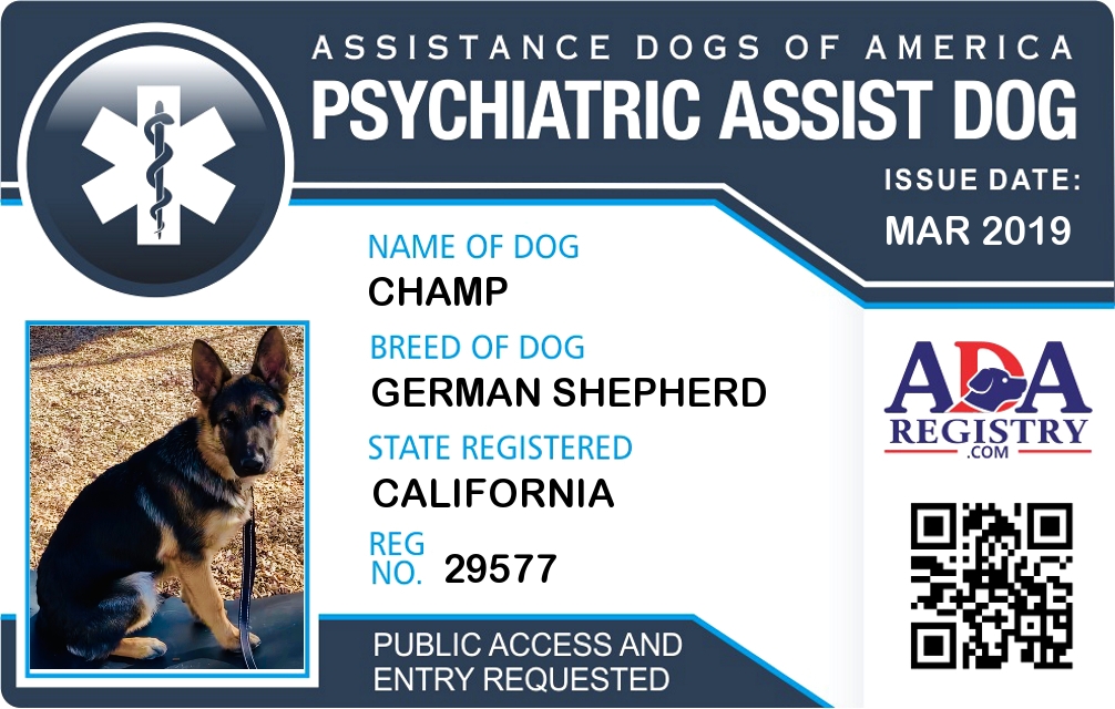 Psychiatric Service Dog Registration for Champ