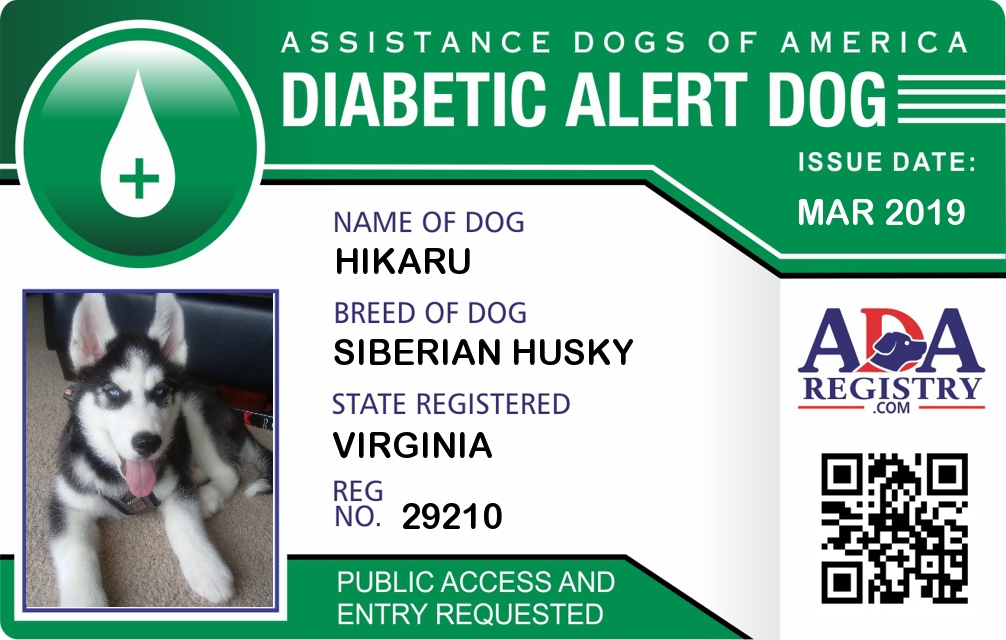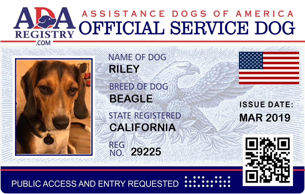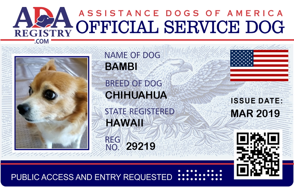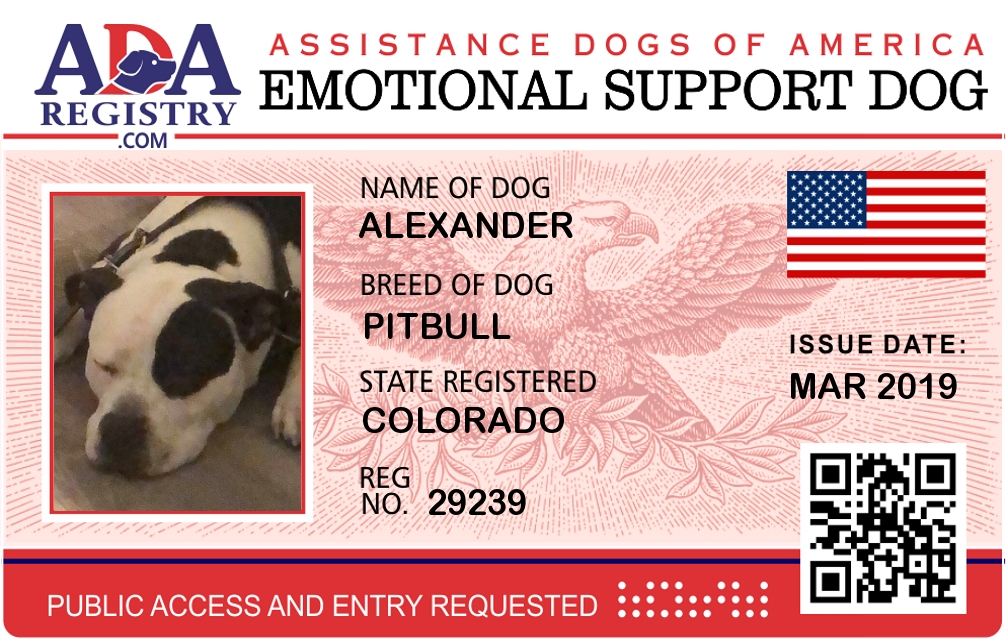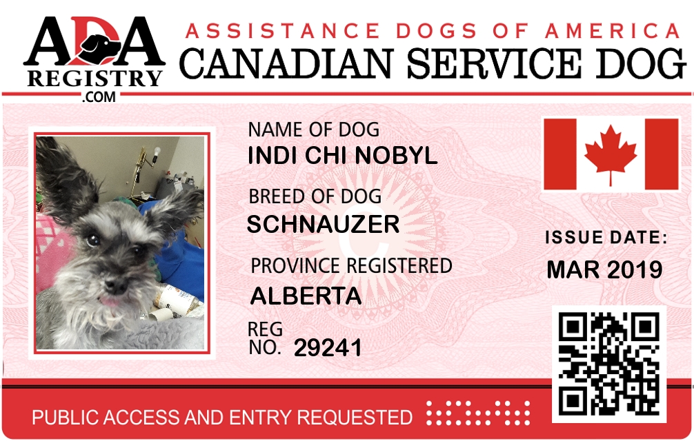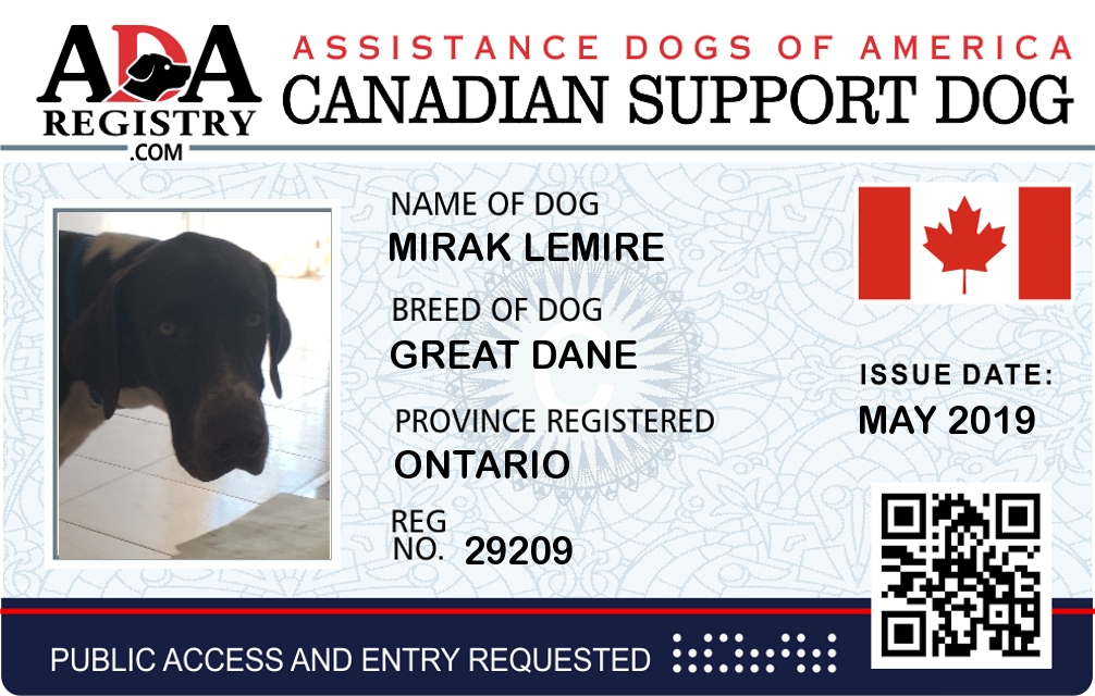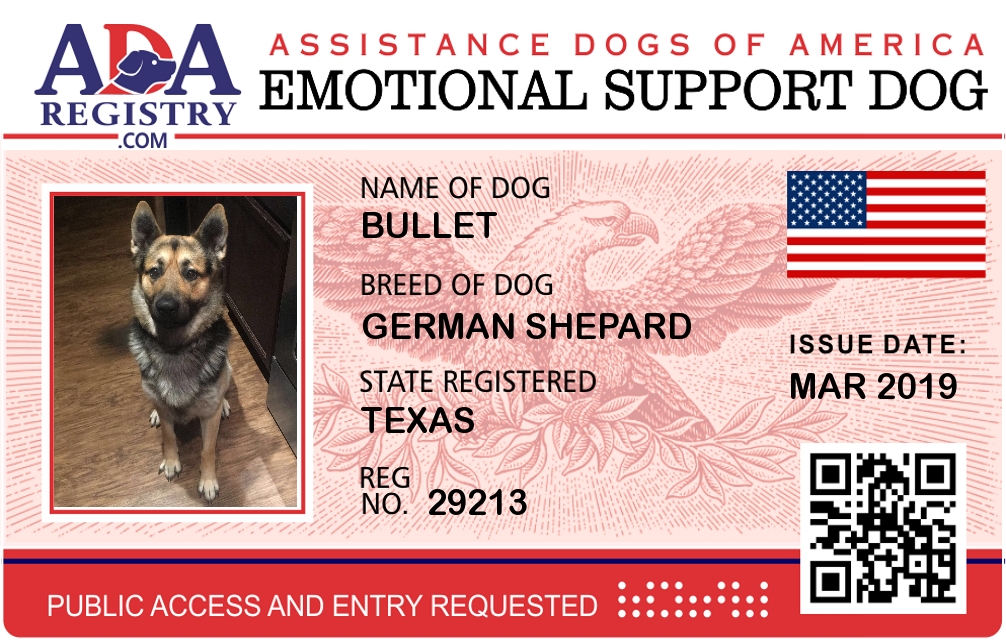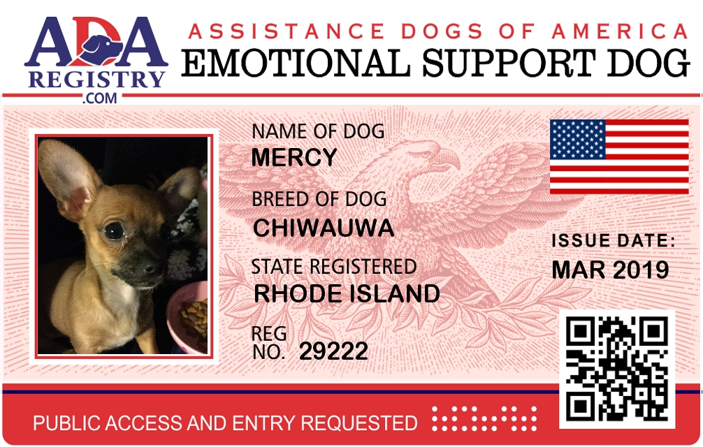 Emotional Support Dog Registration for Pyper Midnight Watso