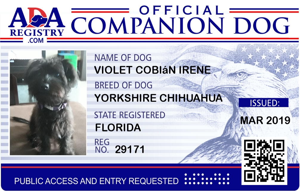 Companion Dog Registration for Violet Cobián Irene
