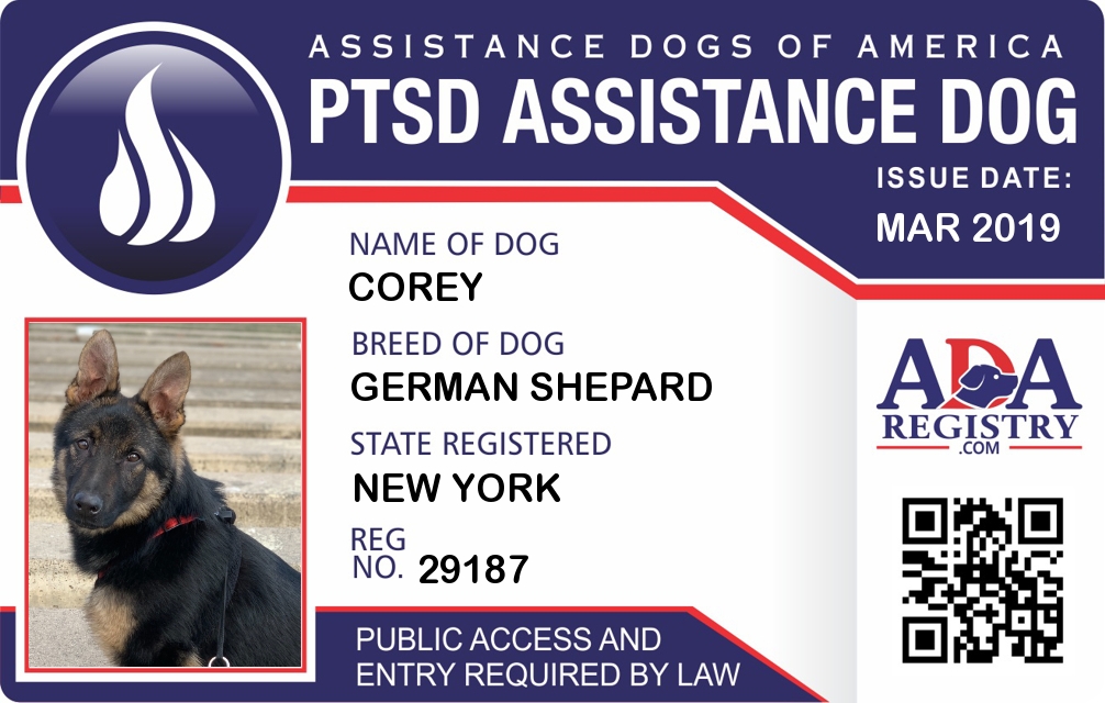 PTSD Assistance Dog Registration for Corey