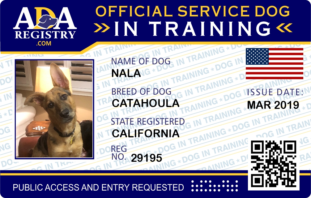 Service Dog In Training Registration for Nala