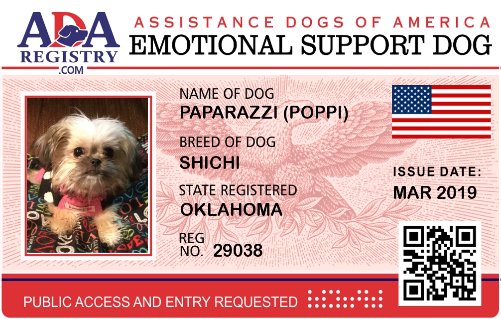 Emotional Support Dog Registration for Paparazzi (Poppi)