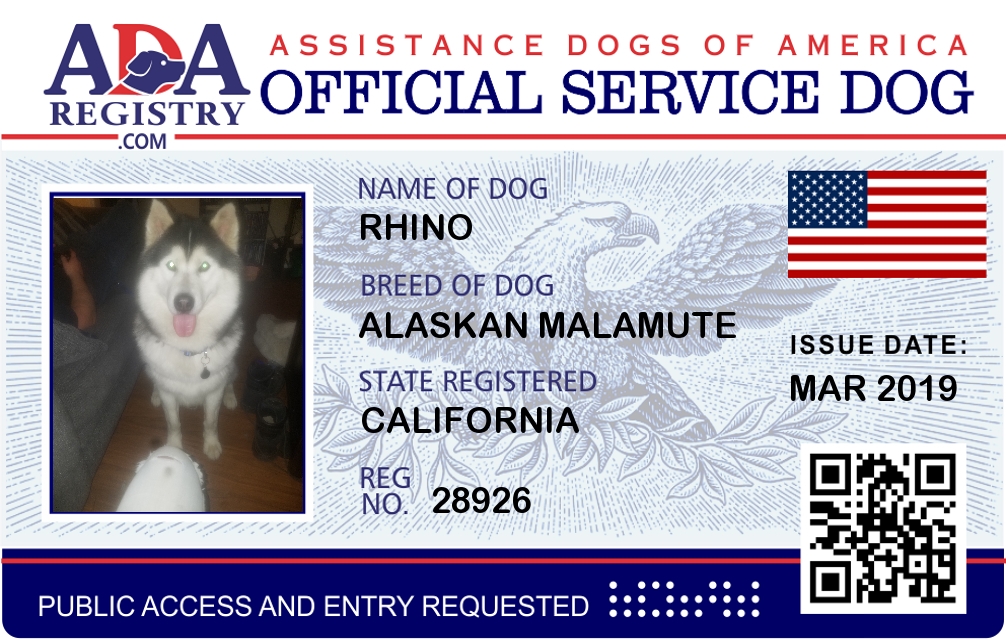 Hearing Assistance Dog Registration for Nipsy Samoa