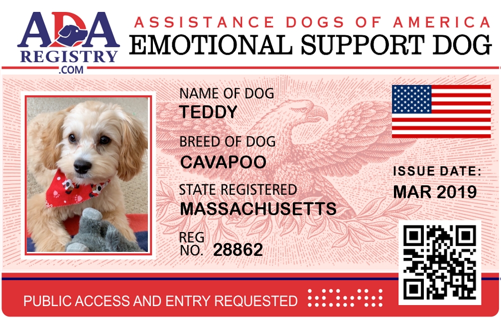 Emotional Support Dog Registration for Teddy