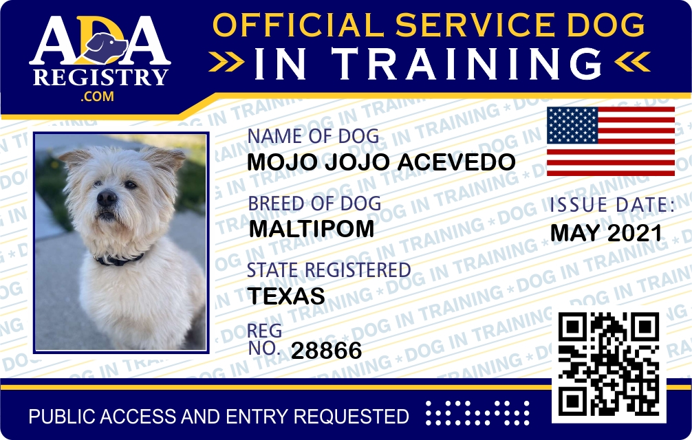 Service Dog In Training Registration for Mojo Jojo Acevedo