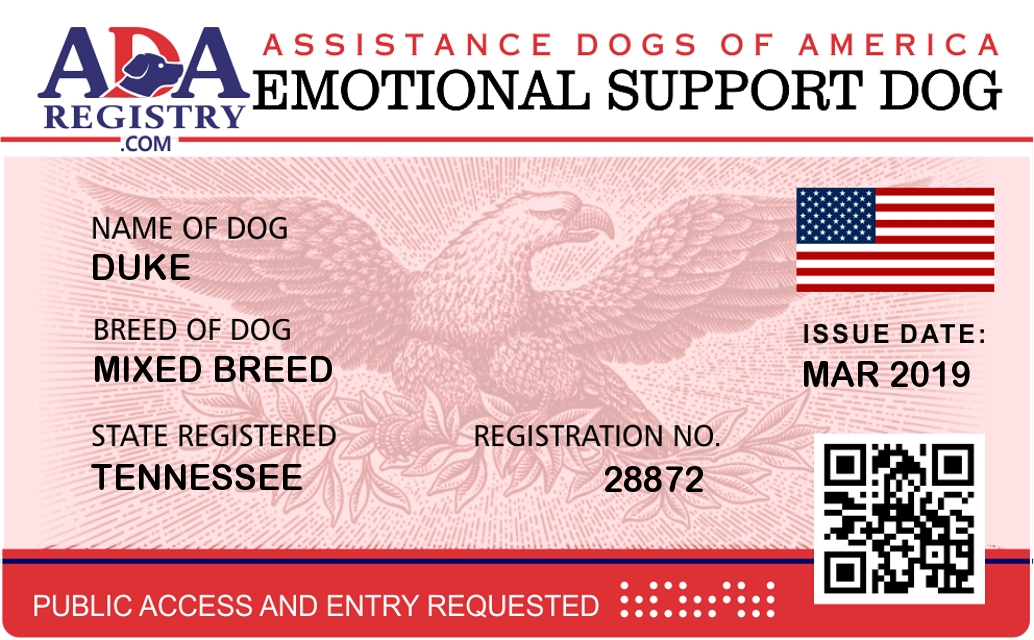 Emotional Support Dog Registration for Duke