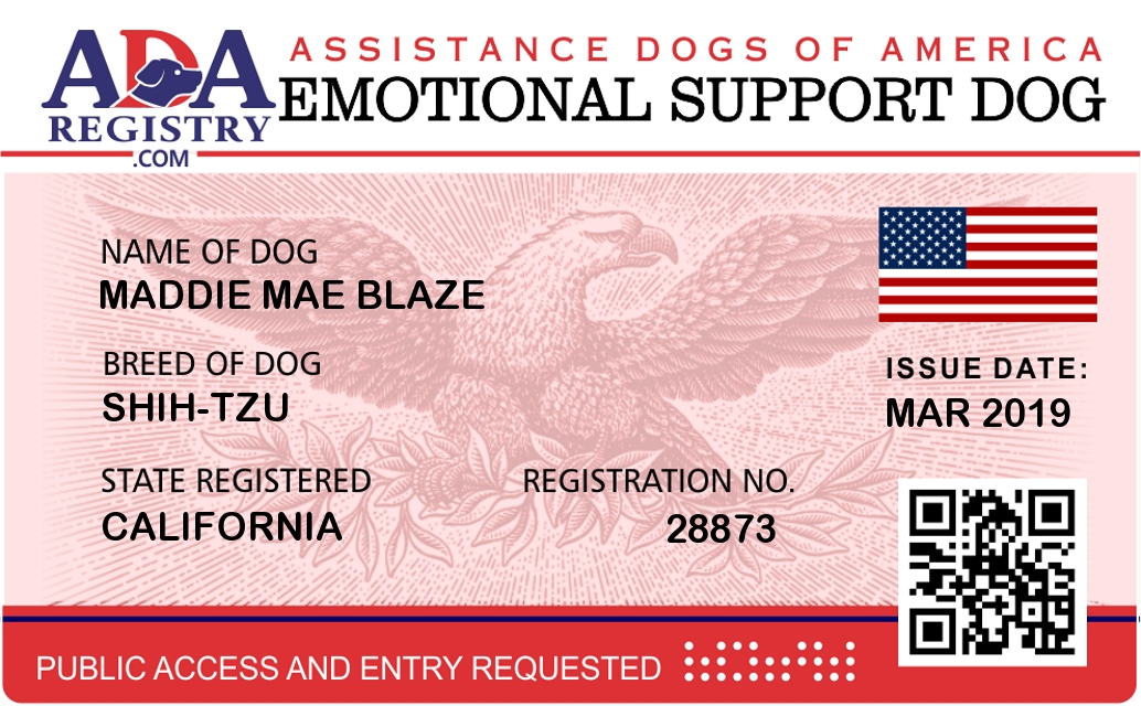 Emotional Support Dog Registration for maddie mae blaze