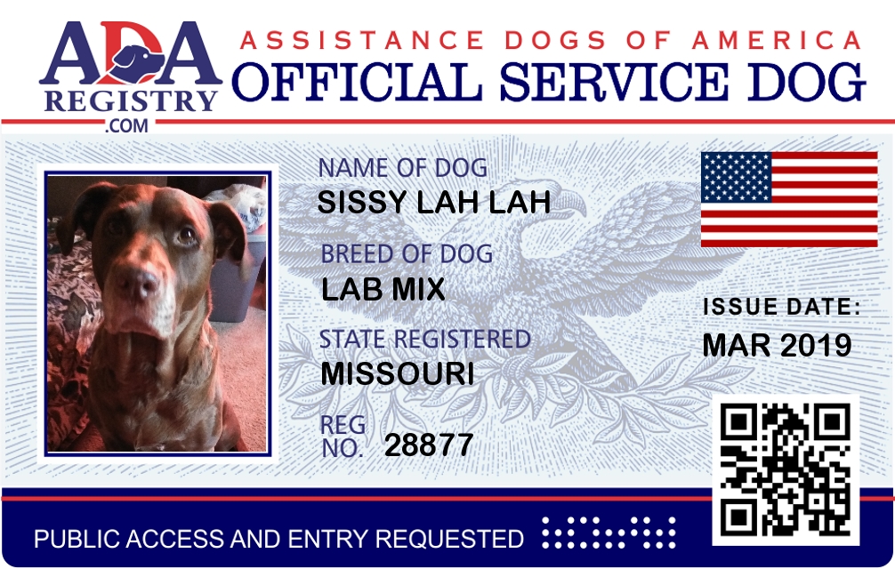 Emotional Support Dog Registration for Sissy Lah Lah