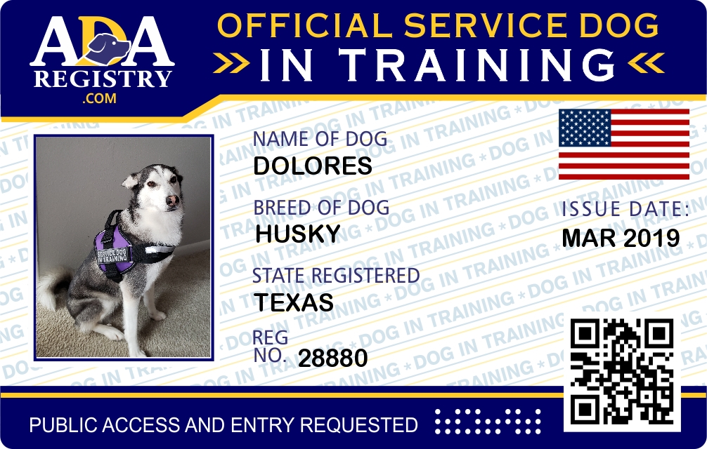 Service Dog In Training Registration for Dolores
