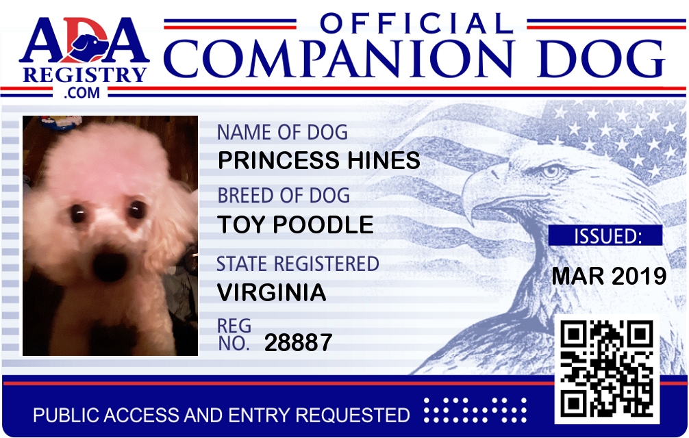 Companion Dog Registration for Princess Hines