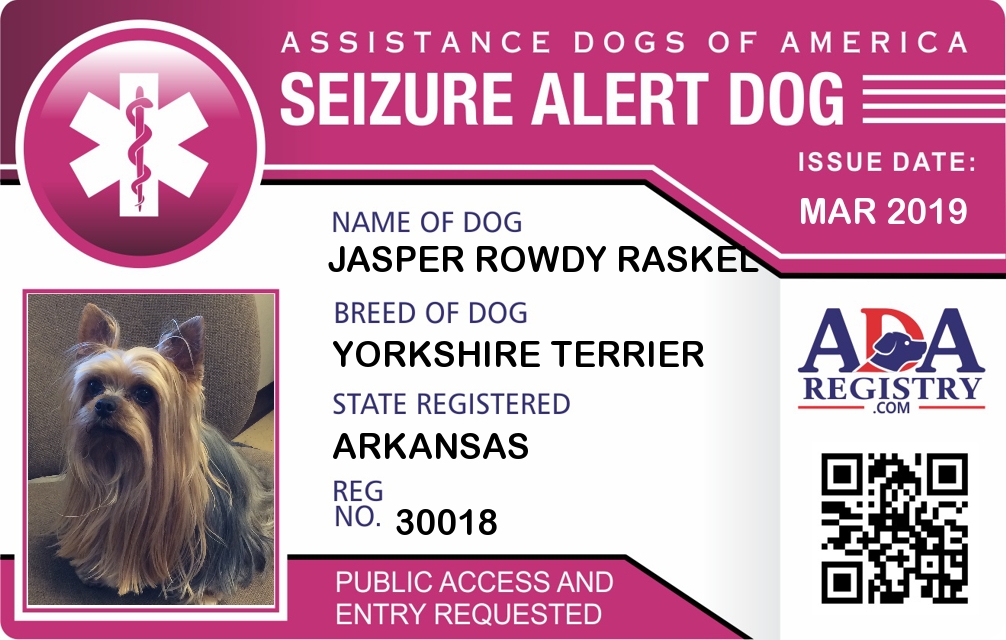 Seizure Assistance Dog Registration for Jasper Rowdy Raskel