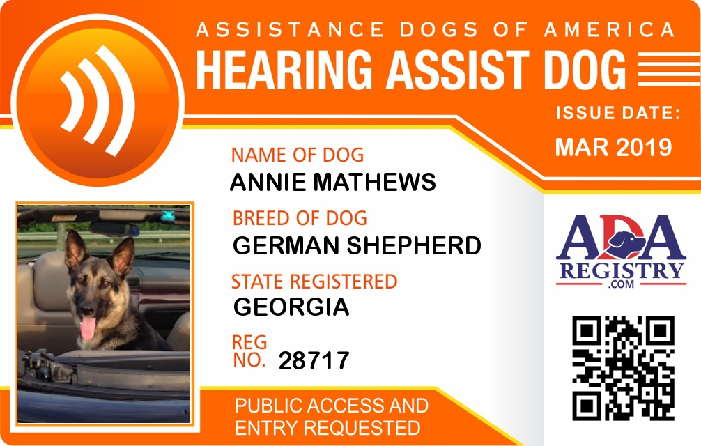 Hearing Assistance Dog Registration for Annie Mathews