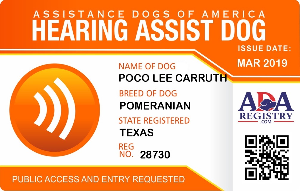 Hearing Assistance Dog Registration for Poco Lee Carruth