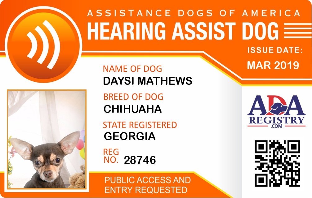 Hearing Assistance Dog Registration for Daysi Mathews