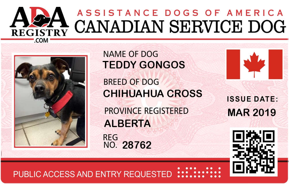 Service Dog Registration for Teddy Gongos