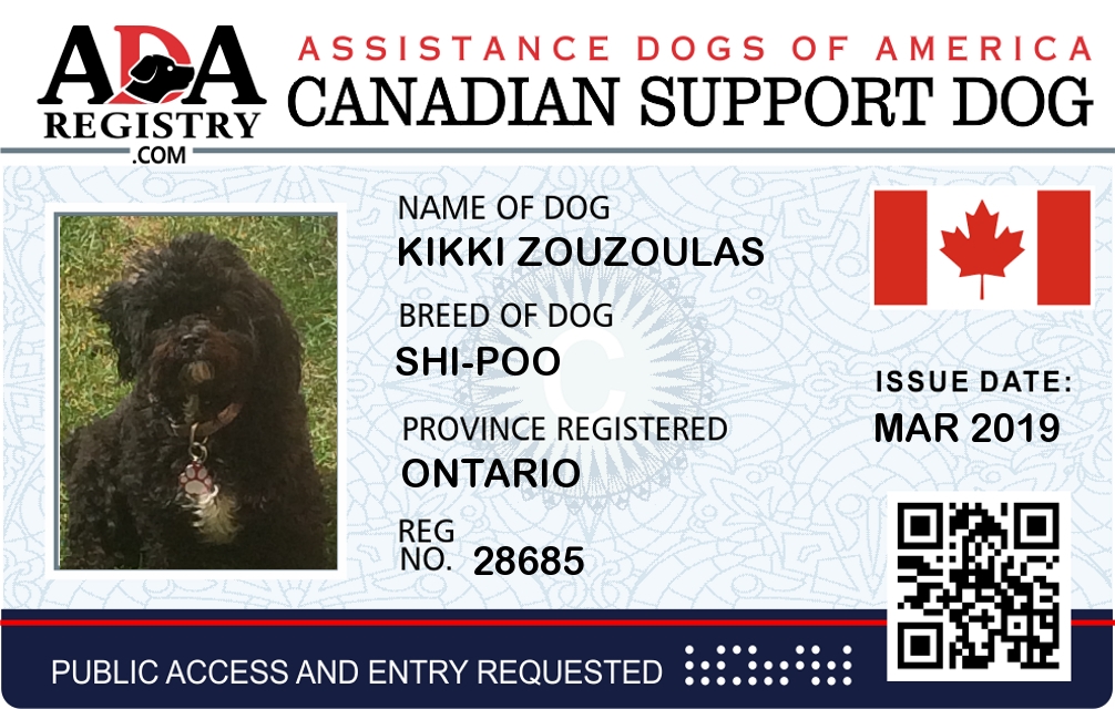 Emotional Support Dog Registration for Kikki Zouzoulas