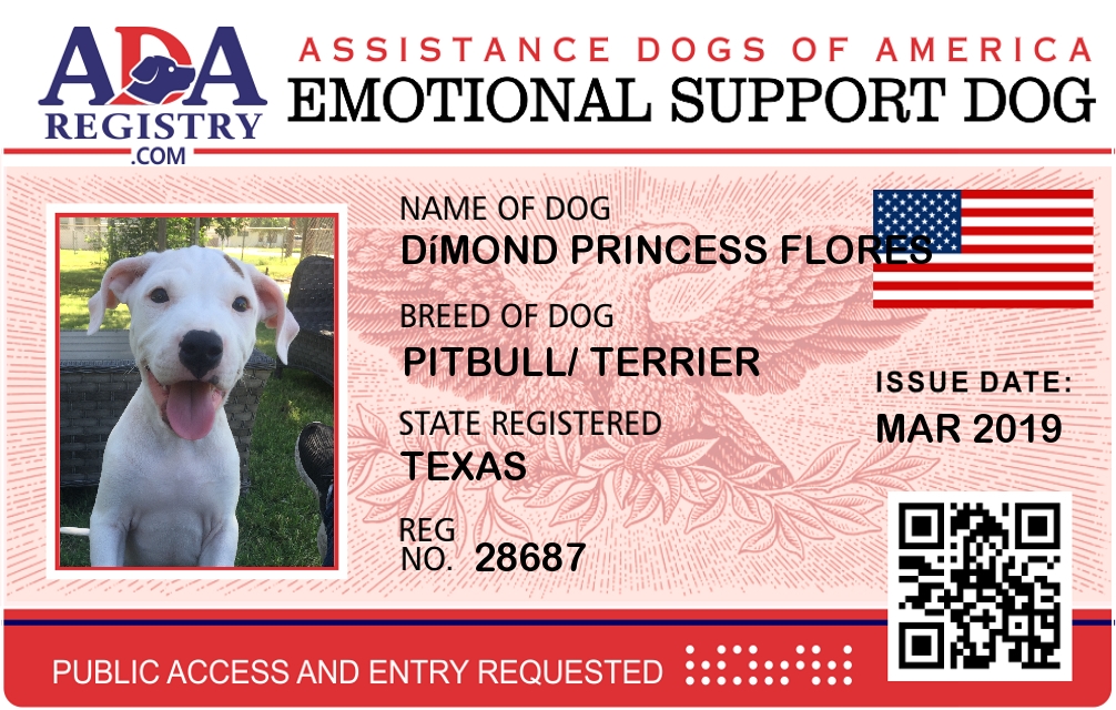 Emotional Support Dog Registration for Dímond Princess Flores