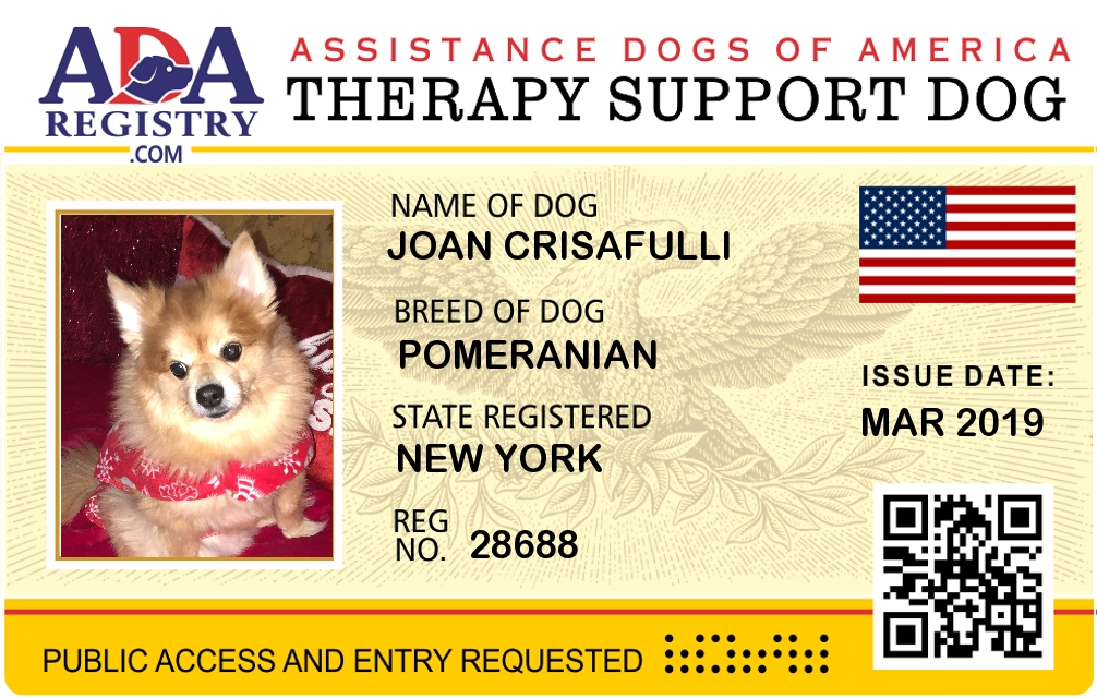 Therapy Dog Registration for Joan Crisafulli