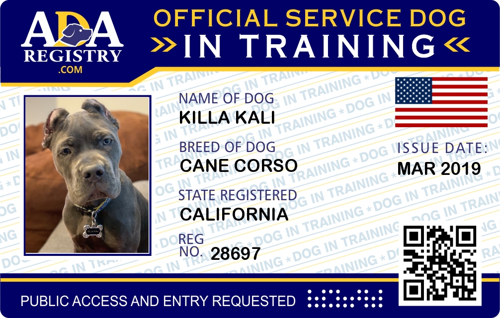 Service Dog In Training Registration for Killa Kali