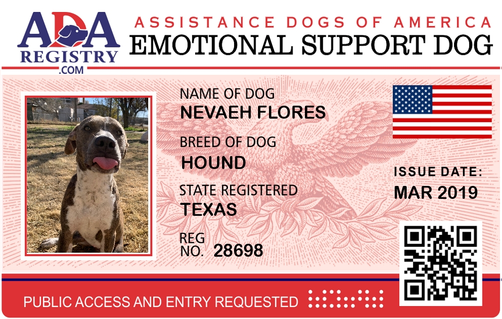Emotional Support Dog Registration for Nevaeh Flores