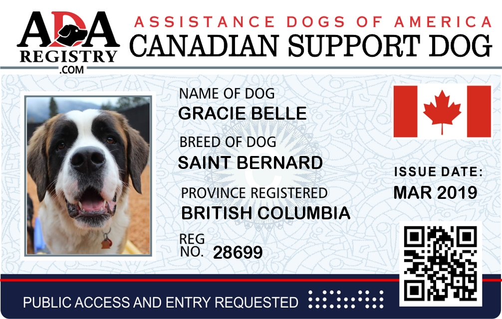 Emotional Support Dog Registration for Gracie Belle