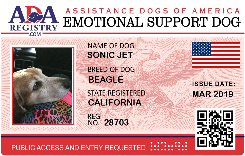 Emotional Support Dog Registration for sonic Jet