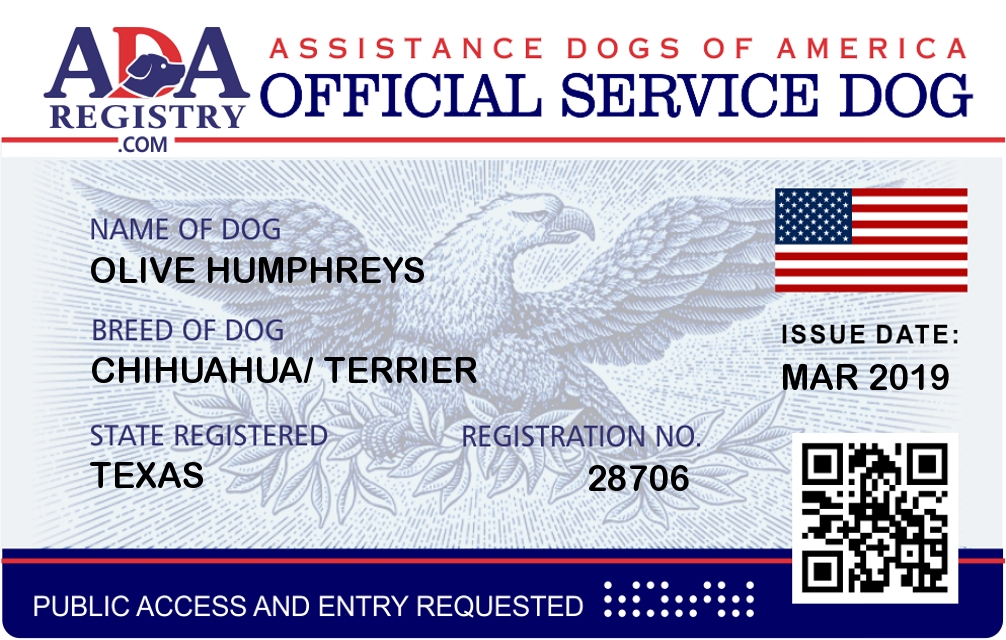 Service Dog Registration for Olive Humphreys