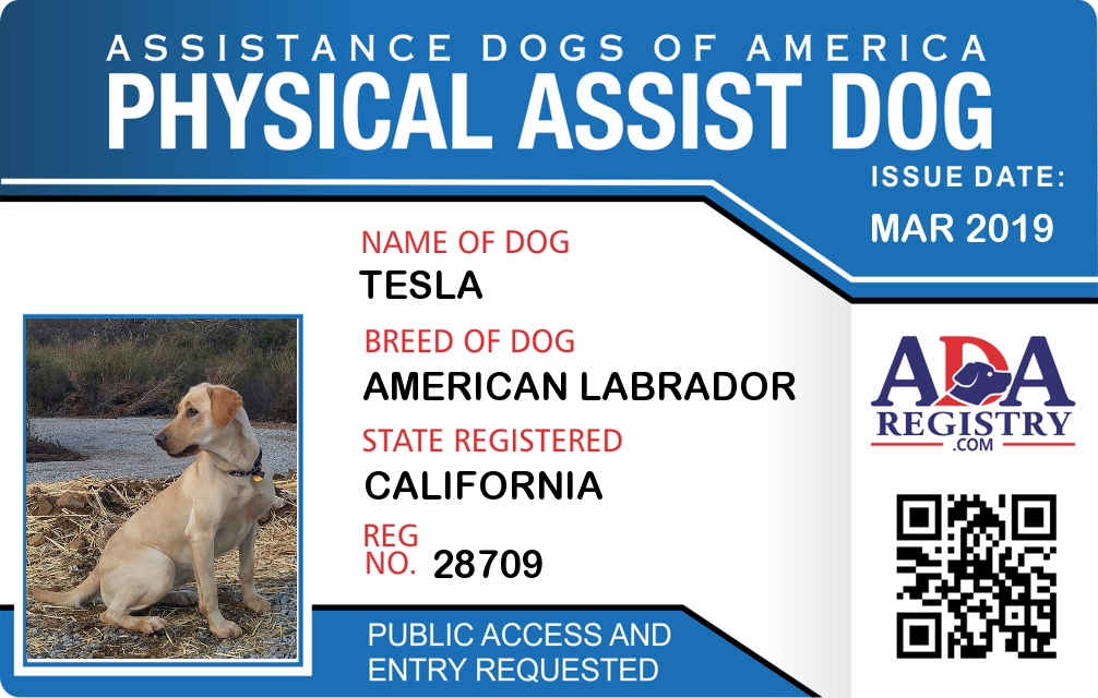 Physical Assistance Dog Registration for Tesla
