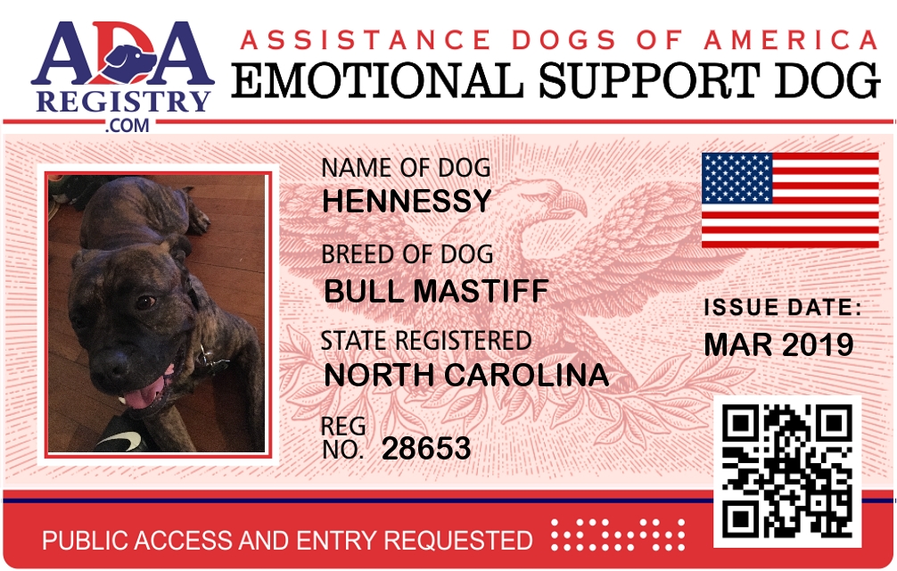 Emotional Support Dog Registration for Hennessy