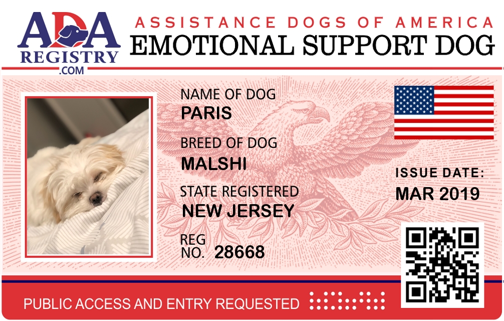 Emotional Support Dog Registration for Jax Hunnies