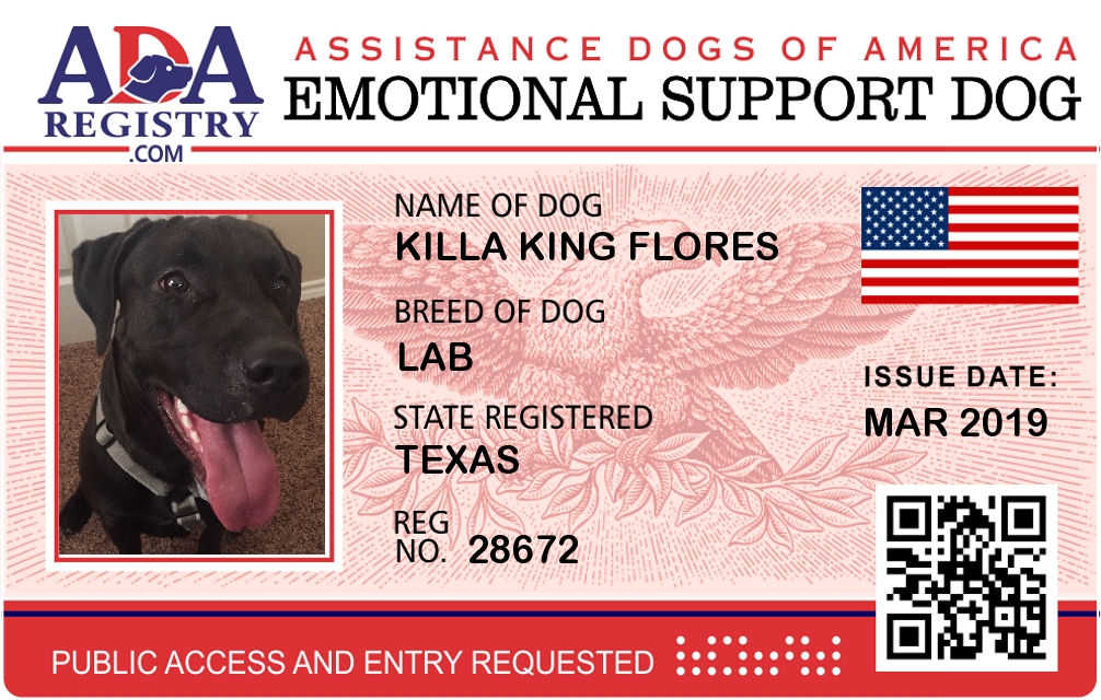 Emotional Support Dog Registration for Killa King Flores
