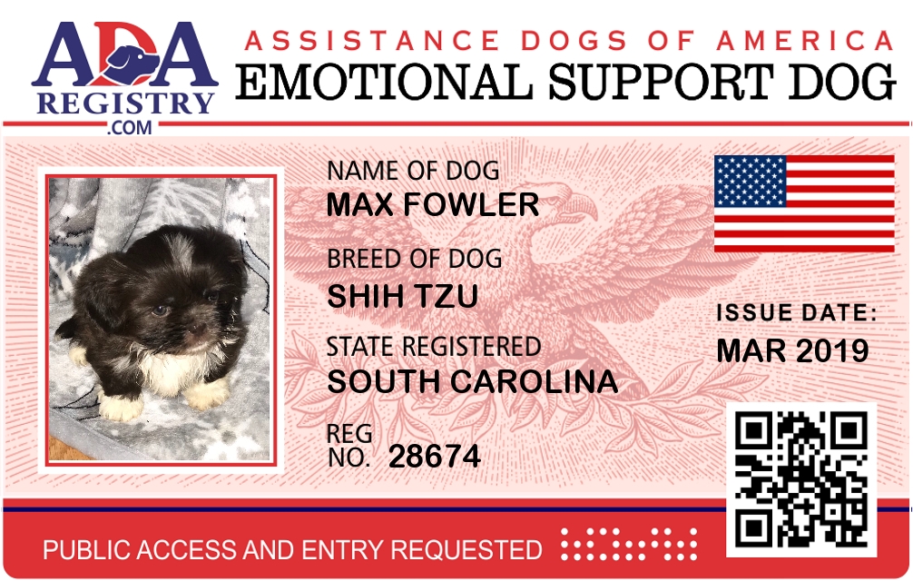 Emotional Support Dog Registration for Max Fowler