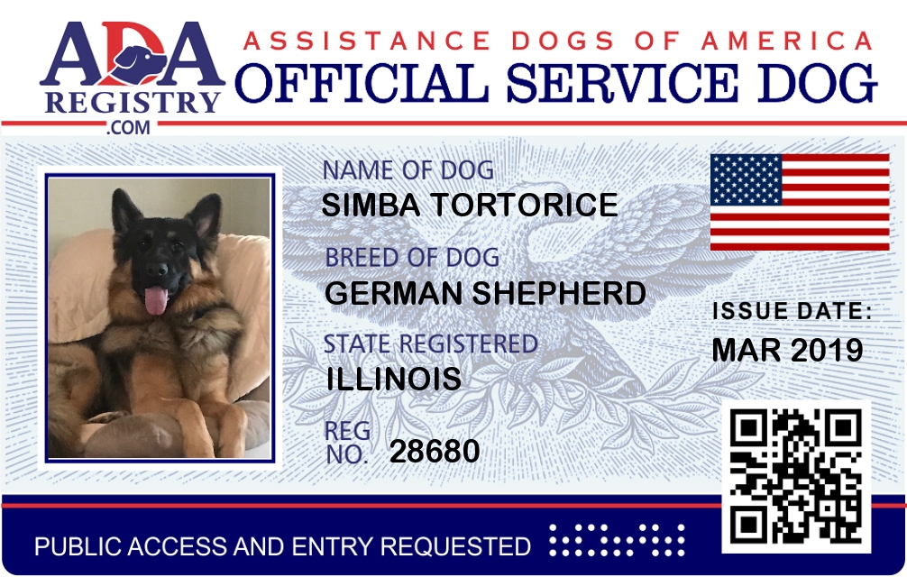 Service Dog Registration for Simba Tortorice