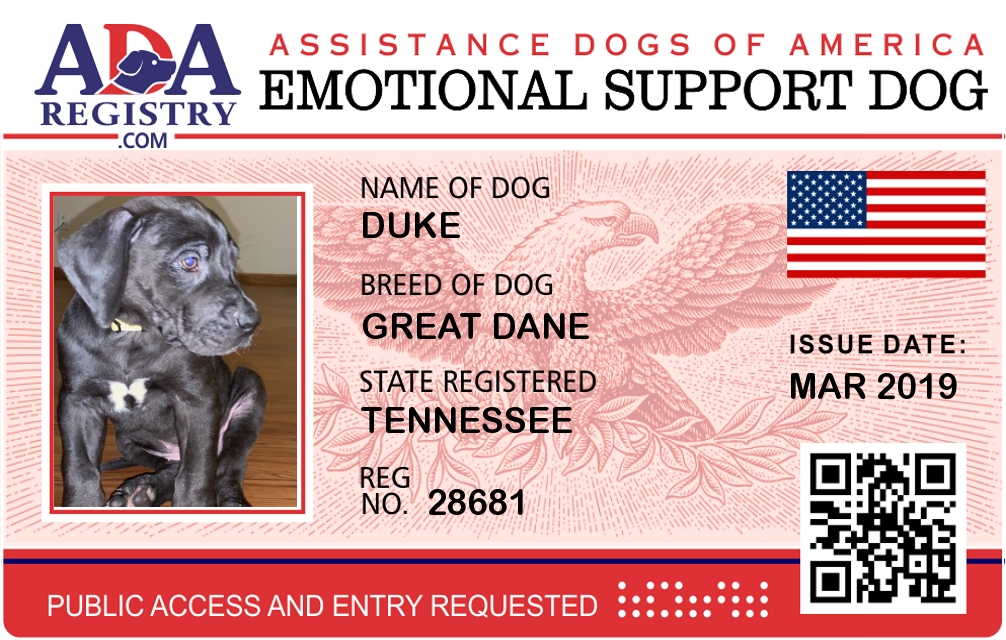 Emotional Support Dog Registration for Duke