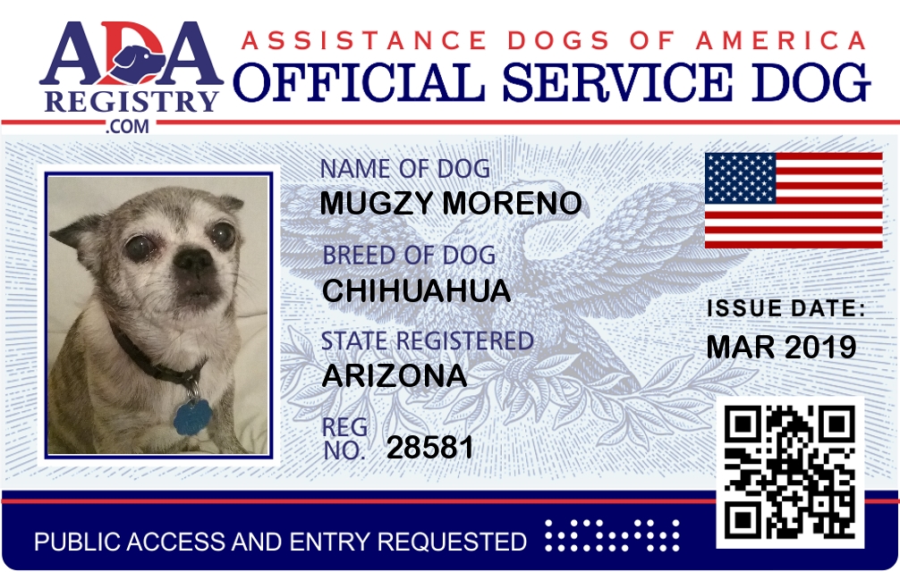 Service Dog Registration for Mugzy Moreno