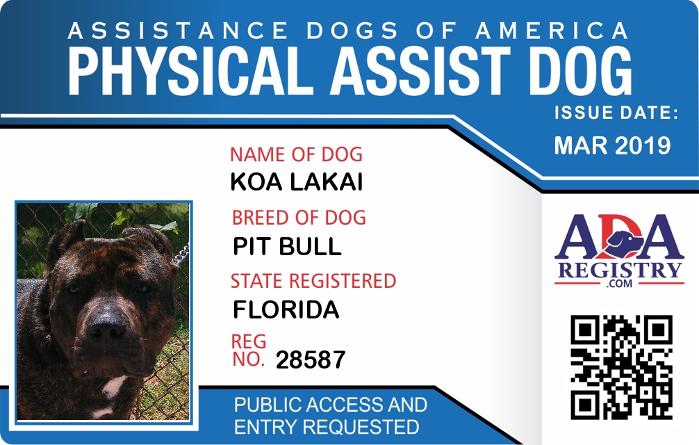 Physical Assistance Dog Registration for Koa Lakai