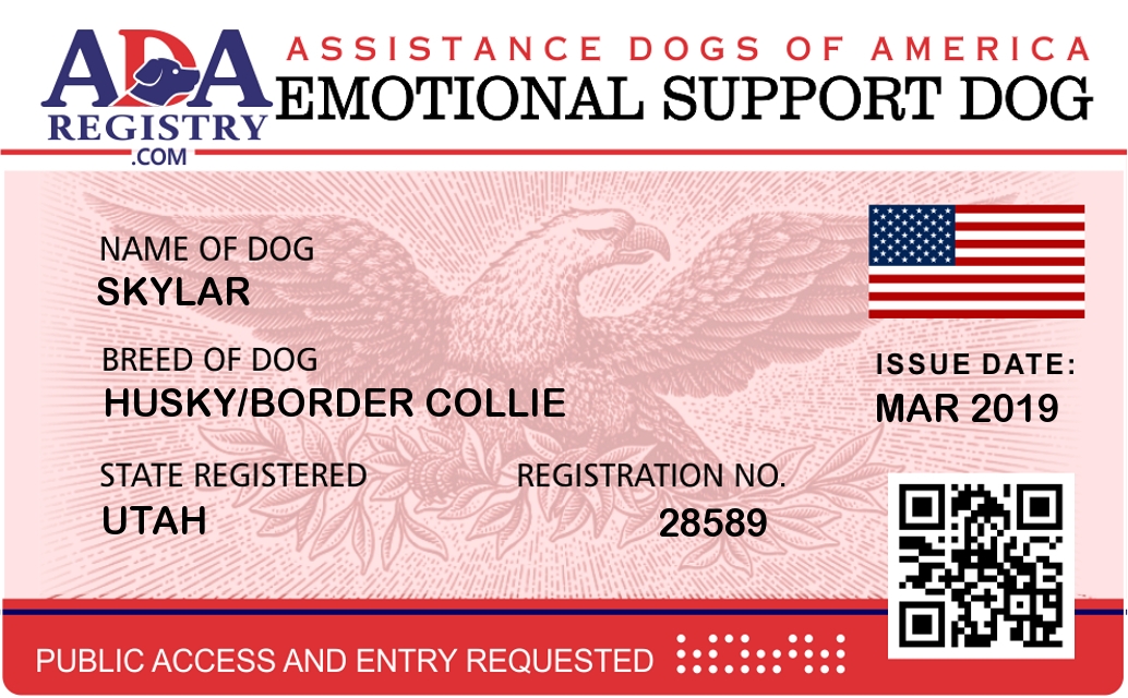 Emotional Support Dog Registration for Skylar