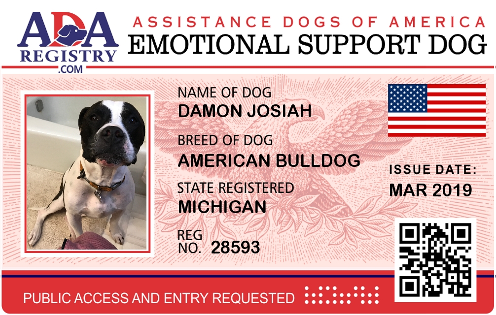 Emotional Support Dog Registration for Damon Josiah