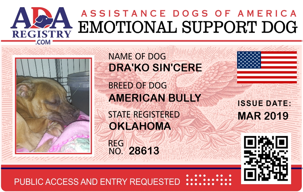 Emotional Support Dog Registration for Dra'Ko Sin'Cere