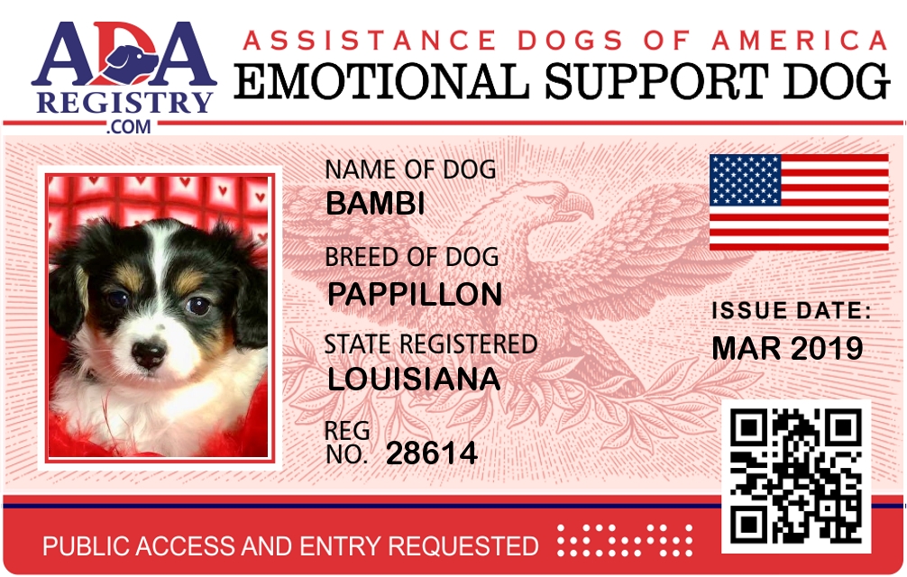 Emotional Support Dog Registration for Bambi