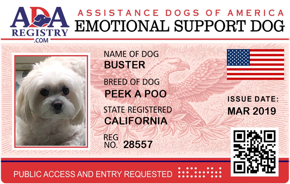 Emotional Support Dog Registration for Buster