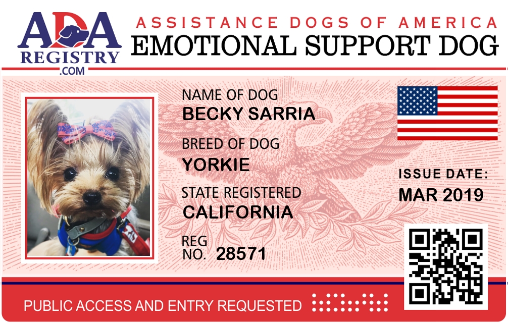 Emotional Support Dog Registration for Becky sarria