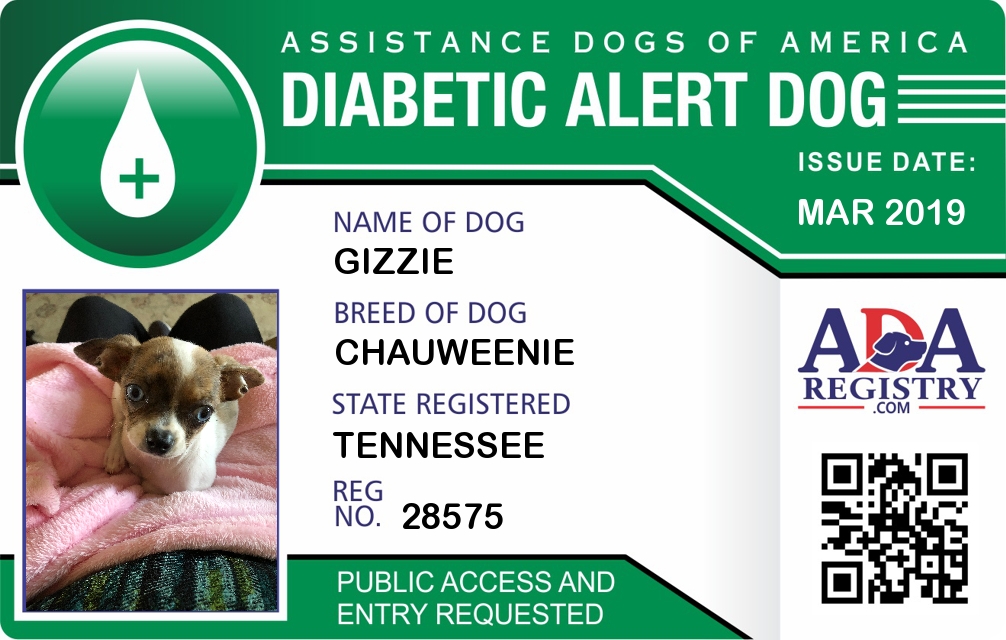 Diabetic Alert Dog Registration for Gizzie