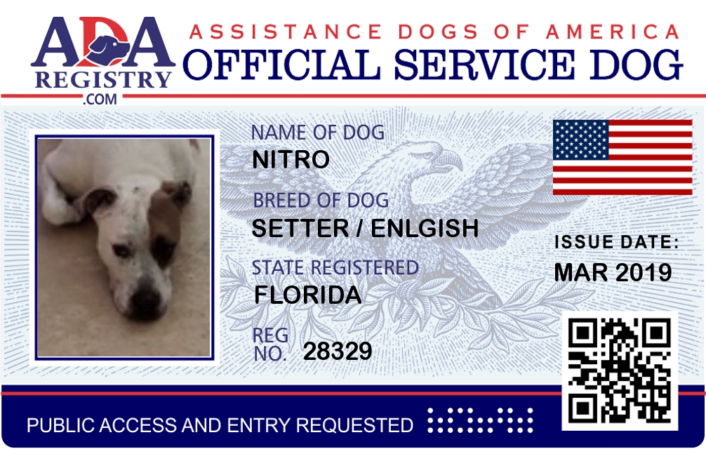 Service Dog Registration for Nitro