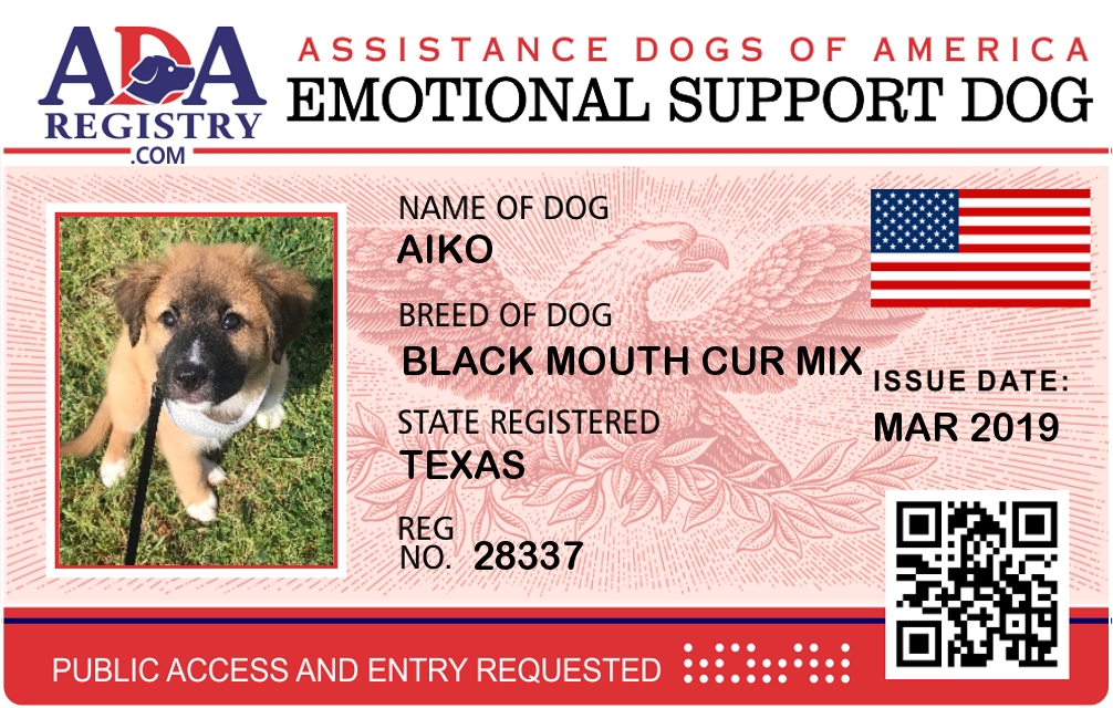 Emotional Support Dog Registration for Aiko